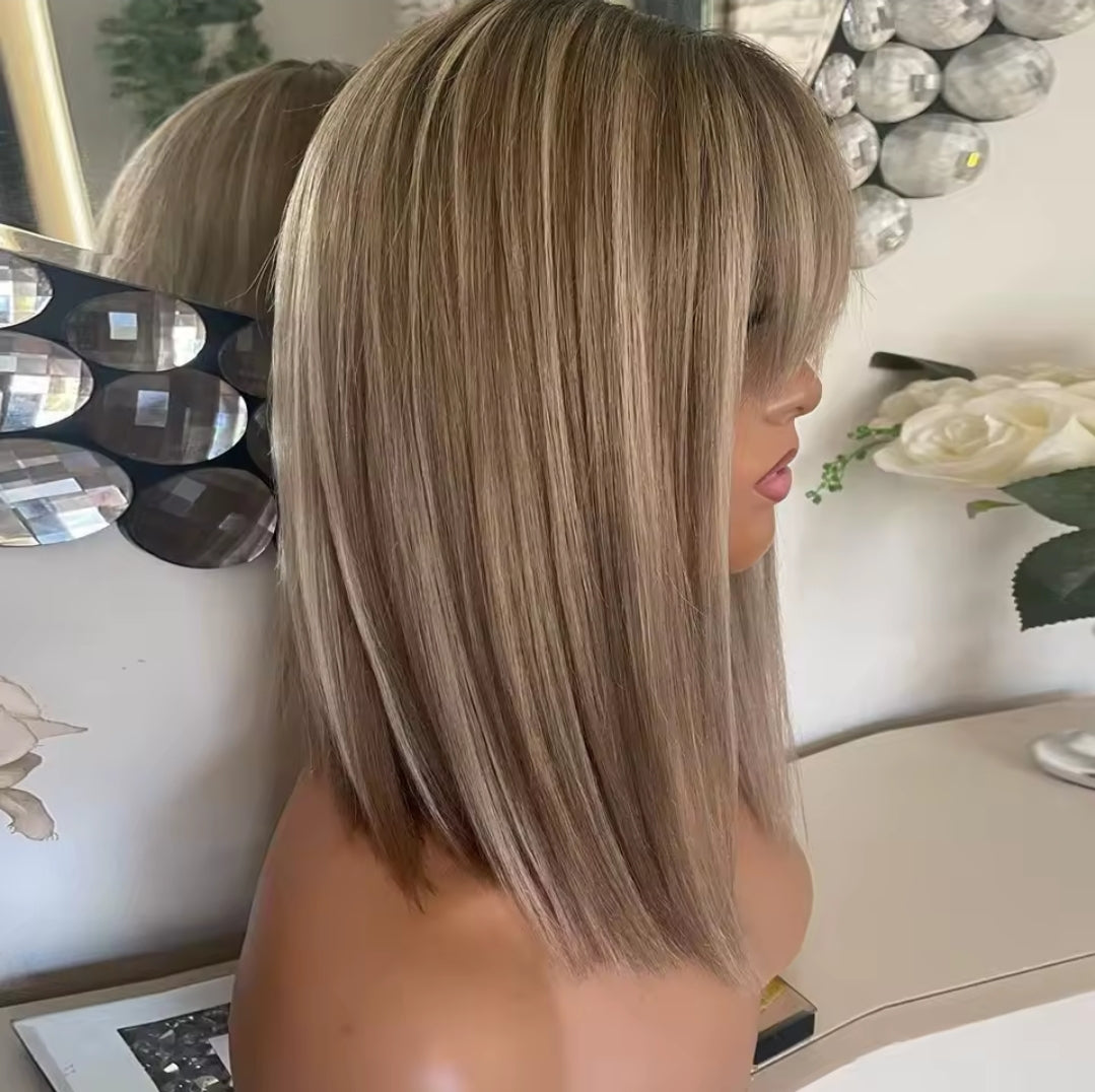 Peruca Lace Humana Loiro com franja 40cm 13x4 HD - Carmen
